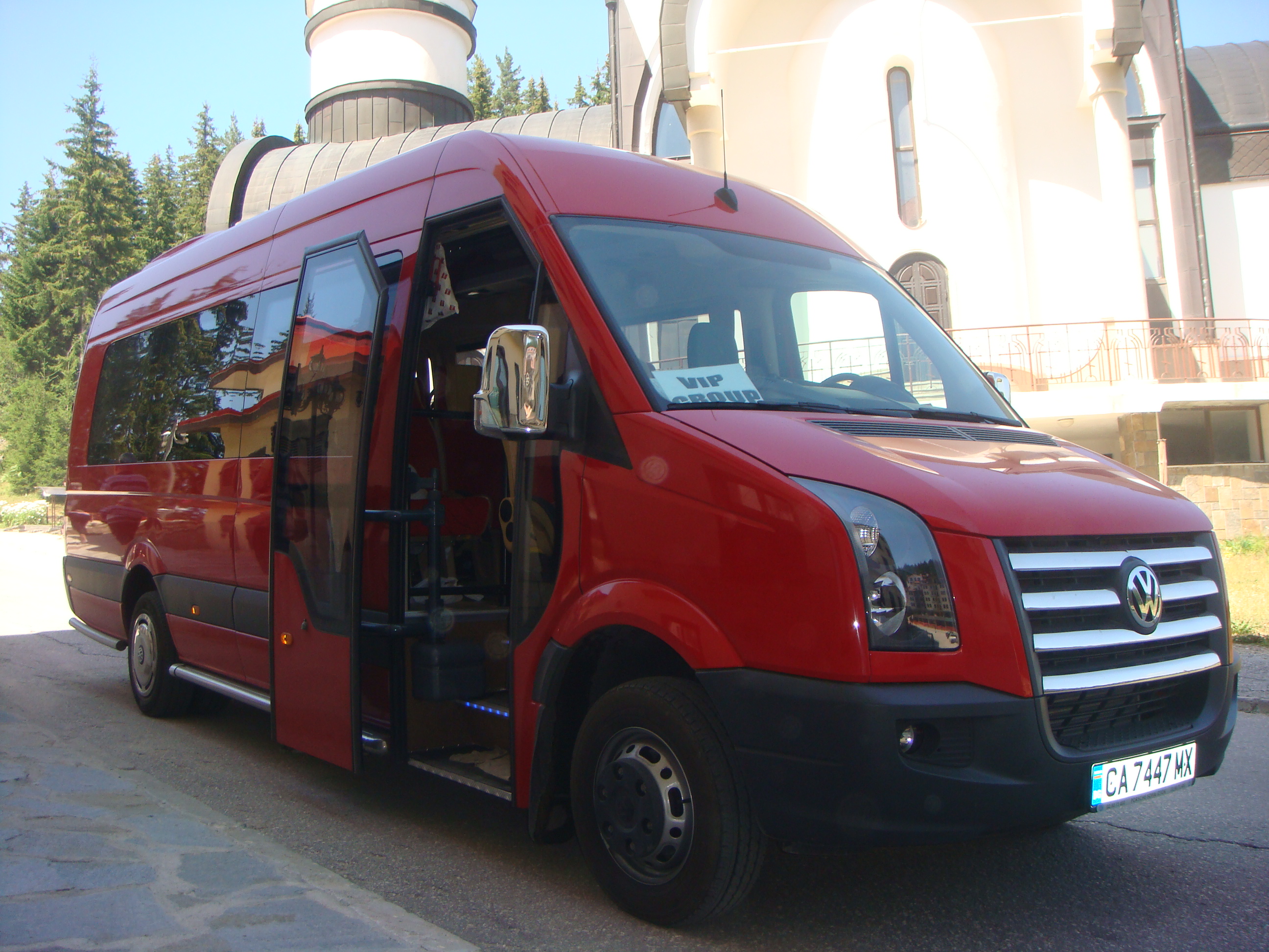 Компанията разполага с 3 броя новозакупени луксозни микробуси с марката Volkswagen Crafter 20 +1 места, които демонстрират последните технически постижения и покриват всички европейски стандарти на пътническия транспорт.